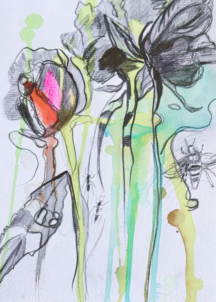 Bleistiftzeichnung auf Aquarell